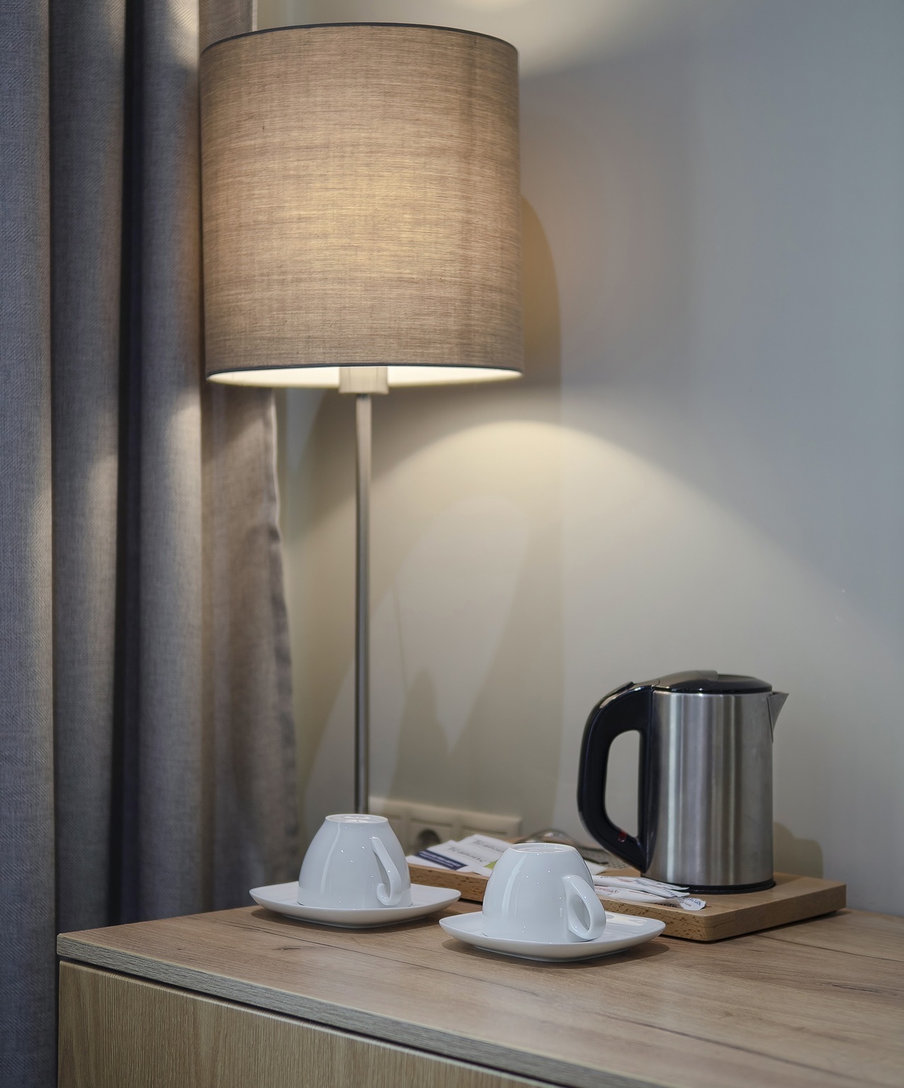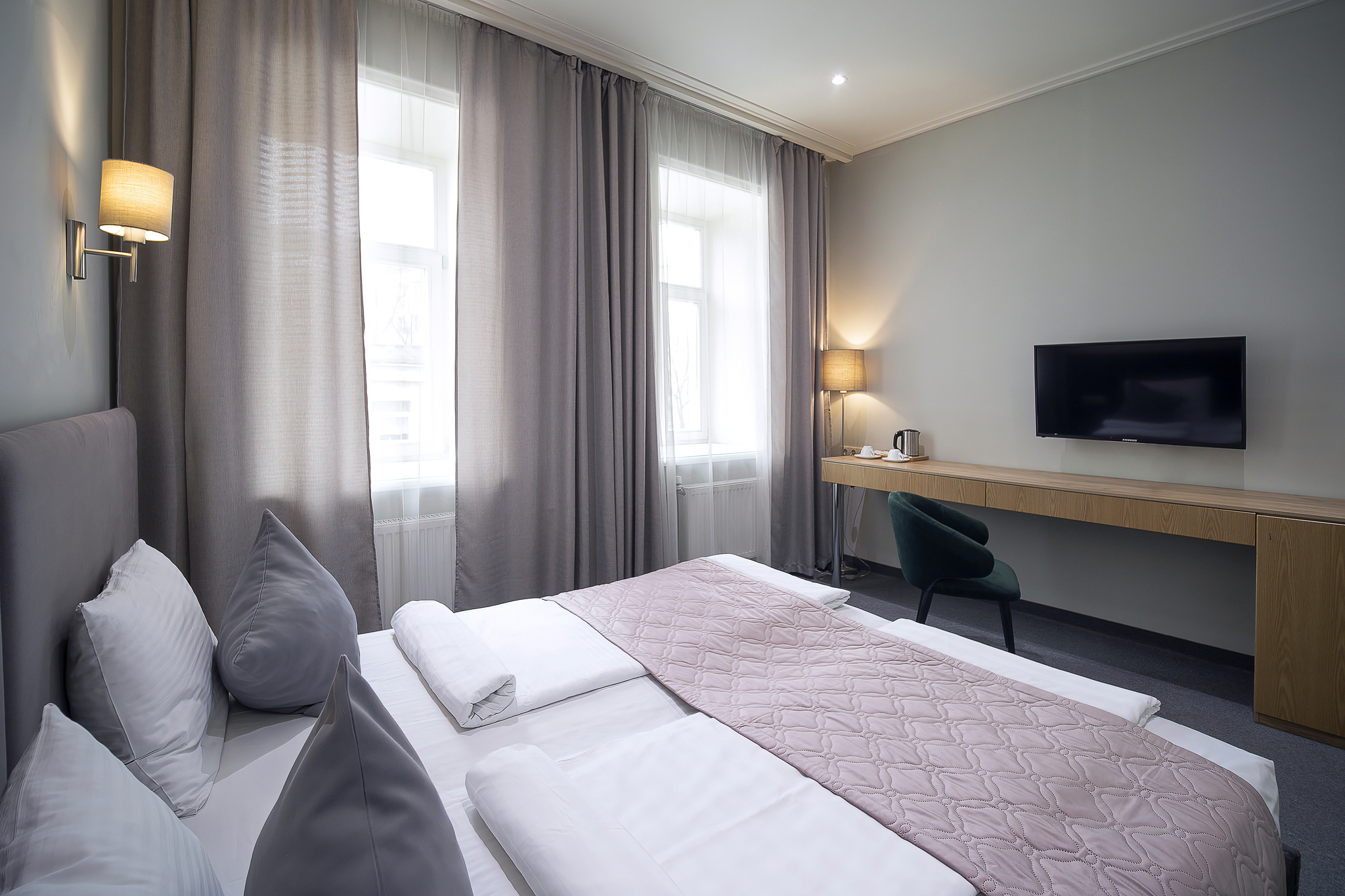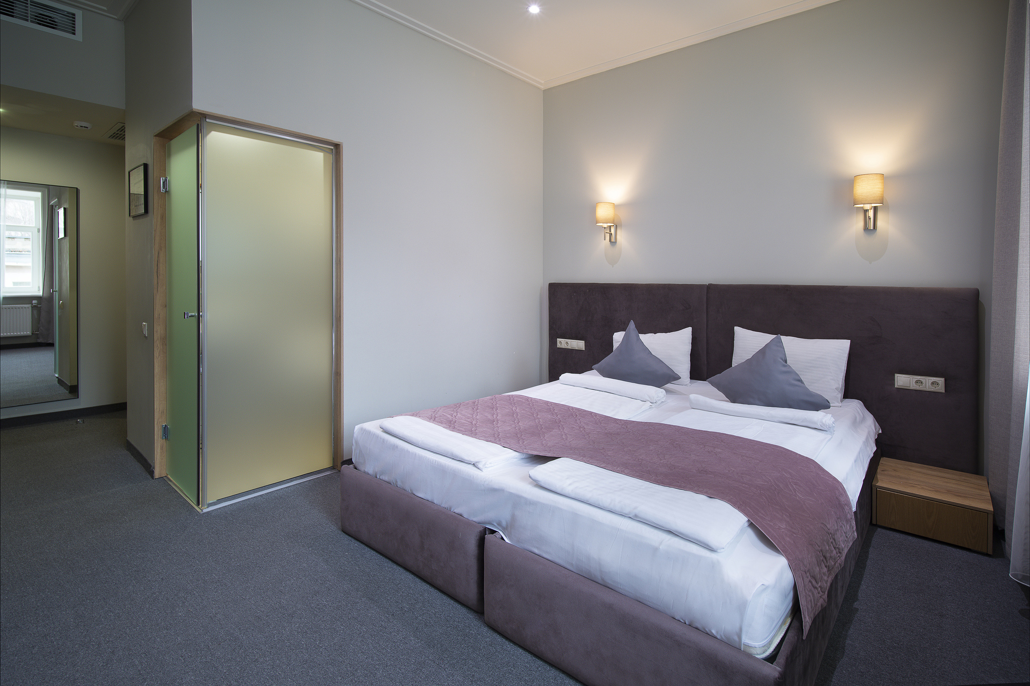 Гостям предоставляются прекрасно оформленные лучшими дизайнерами номера: современные и стильные. Серая цветовая гамма, так популярная в последнее время, поможет успокоится после насыщенного дня и настроиться на отдых. В каждом номере: телевизор, телефон, сейф, кондиционер, кофеварка, удобная мебель, отдельная ванная комната с набором душевых принадлежностей, полотенцами, халатами, тапочками и гигиеническими средствами.