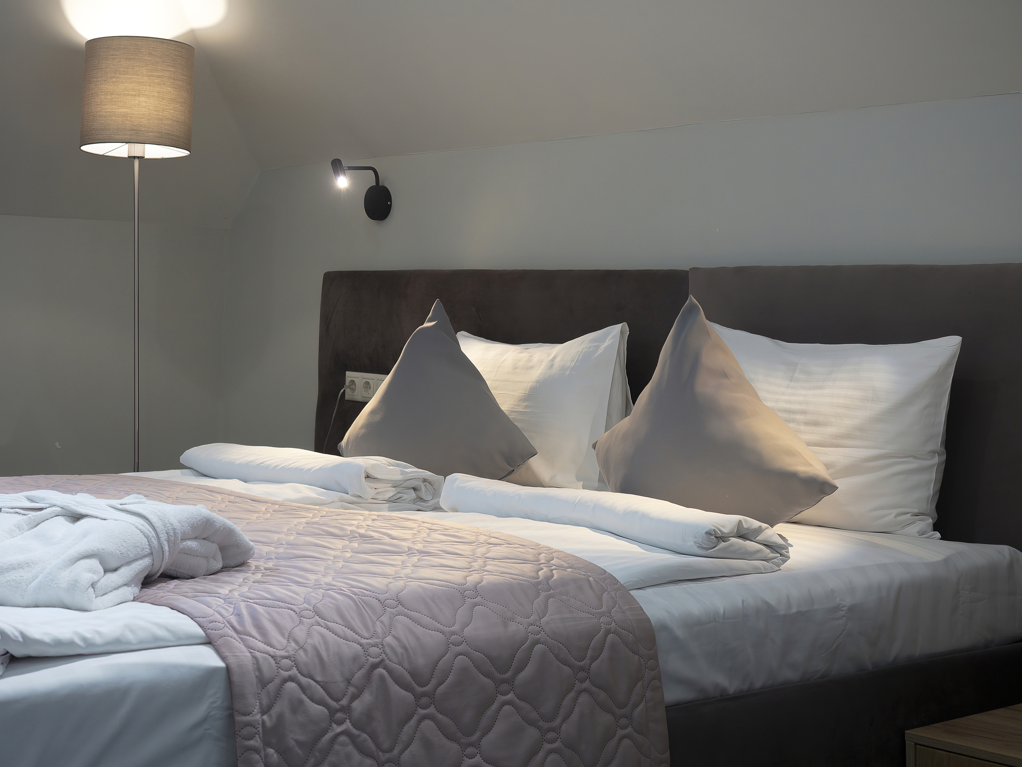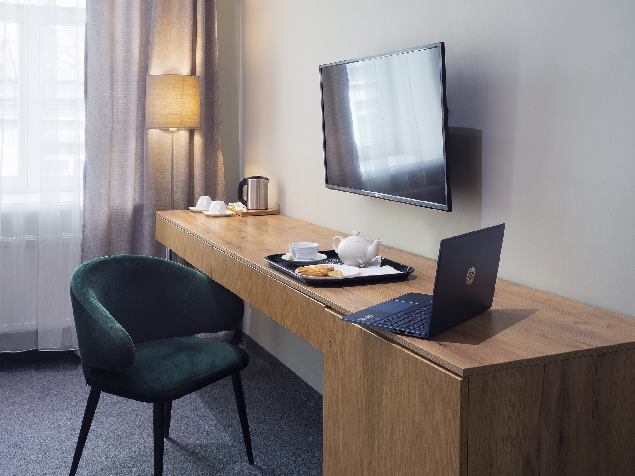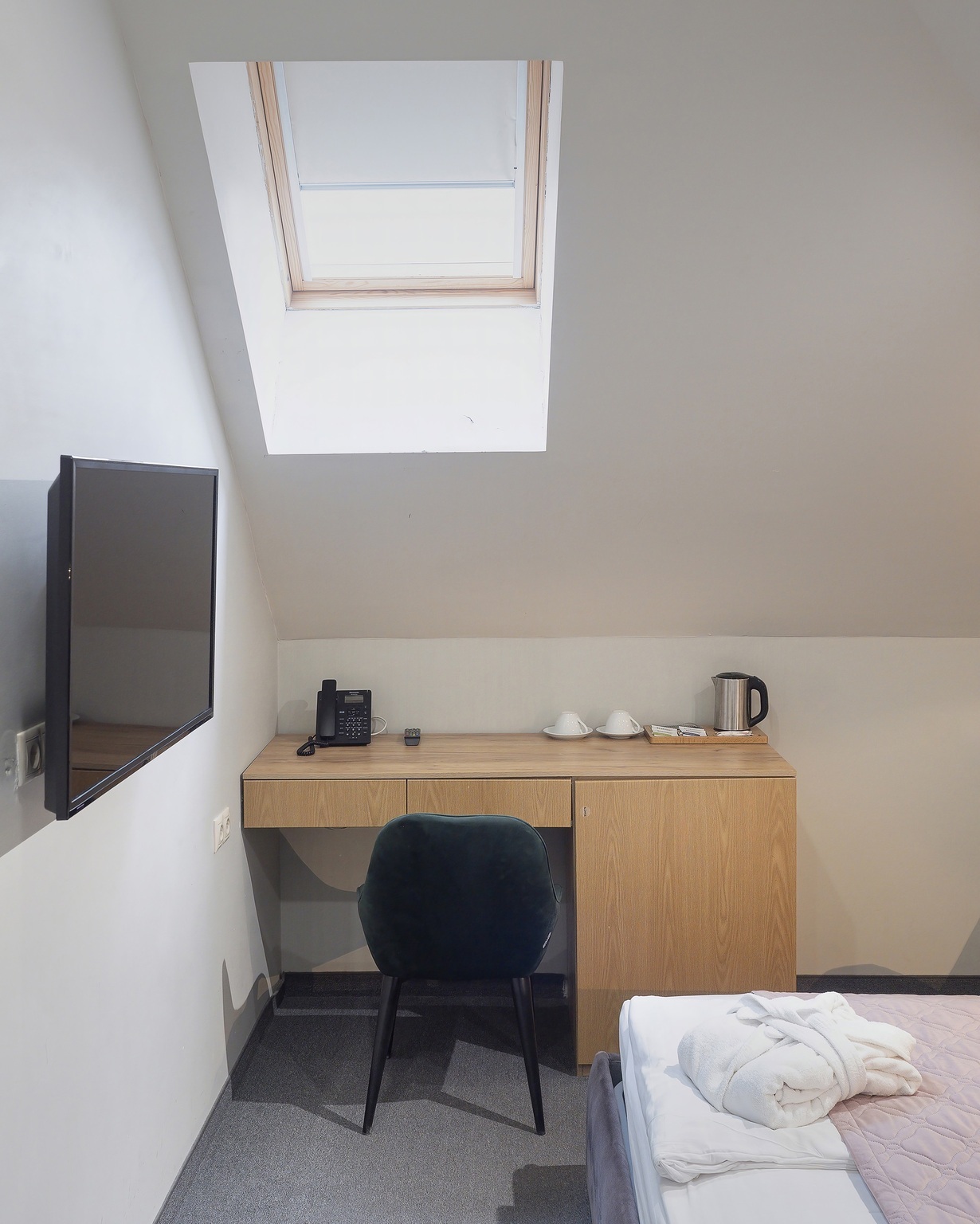 Гостям предоставляются прекрасно оформленные лучшими дизайнерами номера: современные и стильные. Серая цветовая гамма, так популярная в последнее время, поможет успокоится после насыщенного дня и настроиться на отдых. В каждом номере: телевизор, телефон, сейф, кондиционер, кофеварка, удобная мебель, отдельная ванная комната с набором душевых принадлежностей, полотенцами, халатами, тапочками и гигиеническими средствами.